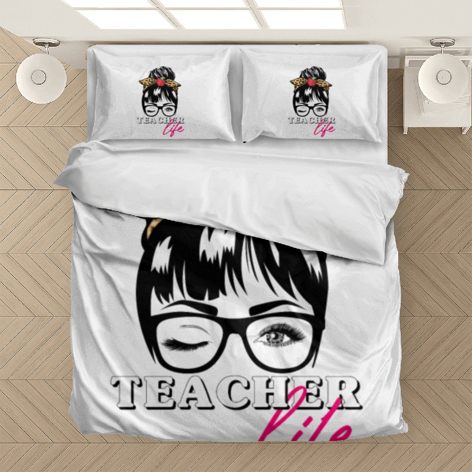 Own fascinating Teacher Life Messy Bun Bandana Bedding Sets or see more Bedding Sets products now from Printblur shop to enjoy your shopping time!