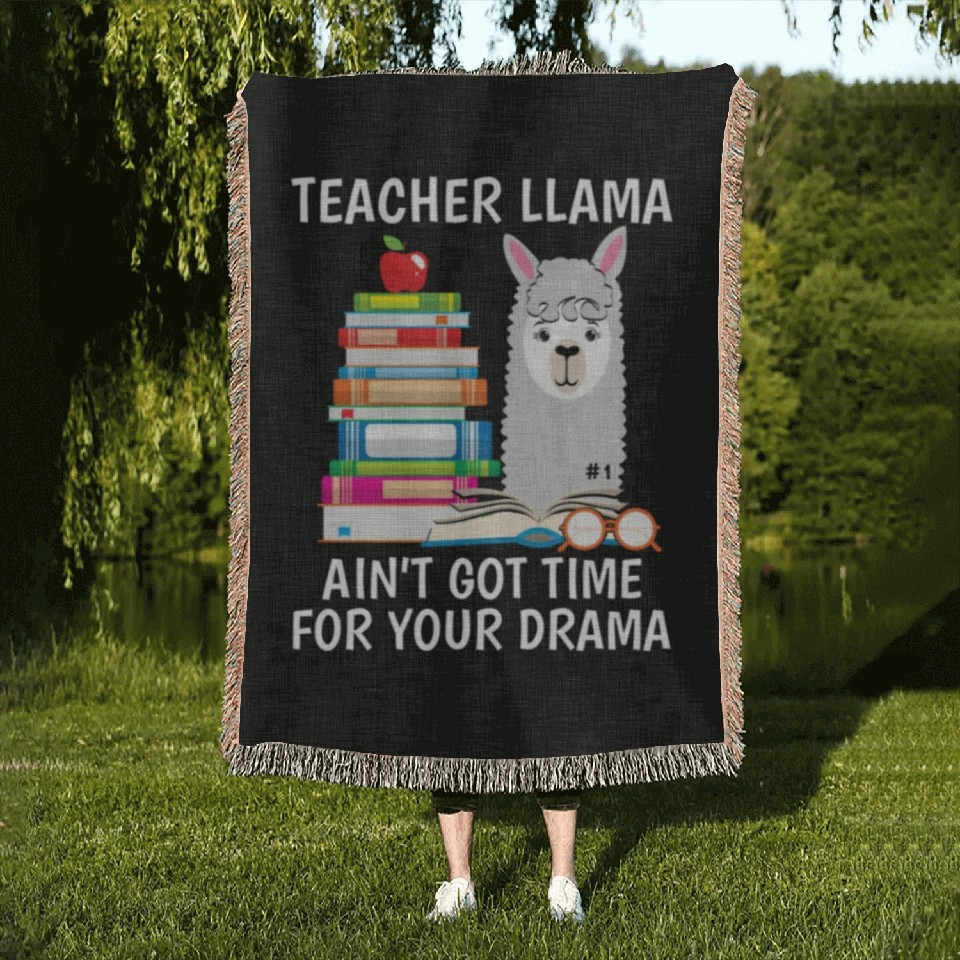 The item hot trend you're looking at is Teacher Llama Ain t Got Time For Your Drama Woven Blankets For Black belong theme Woven Blankets at Printblur