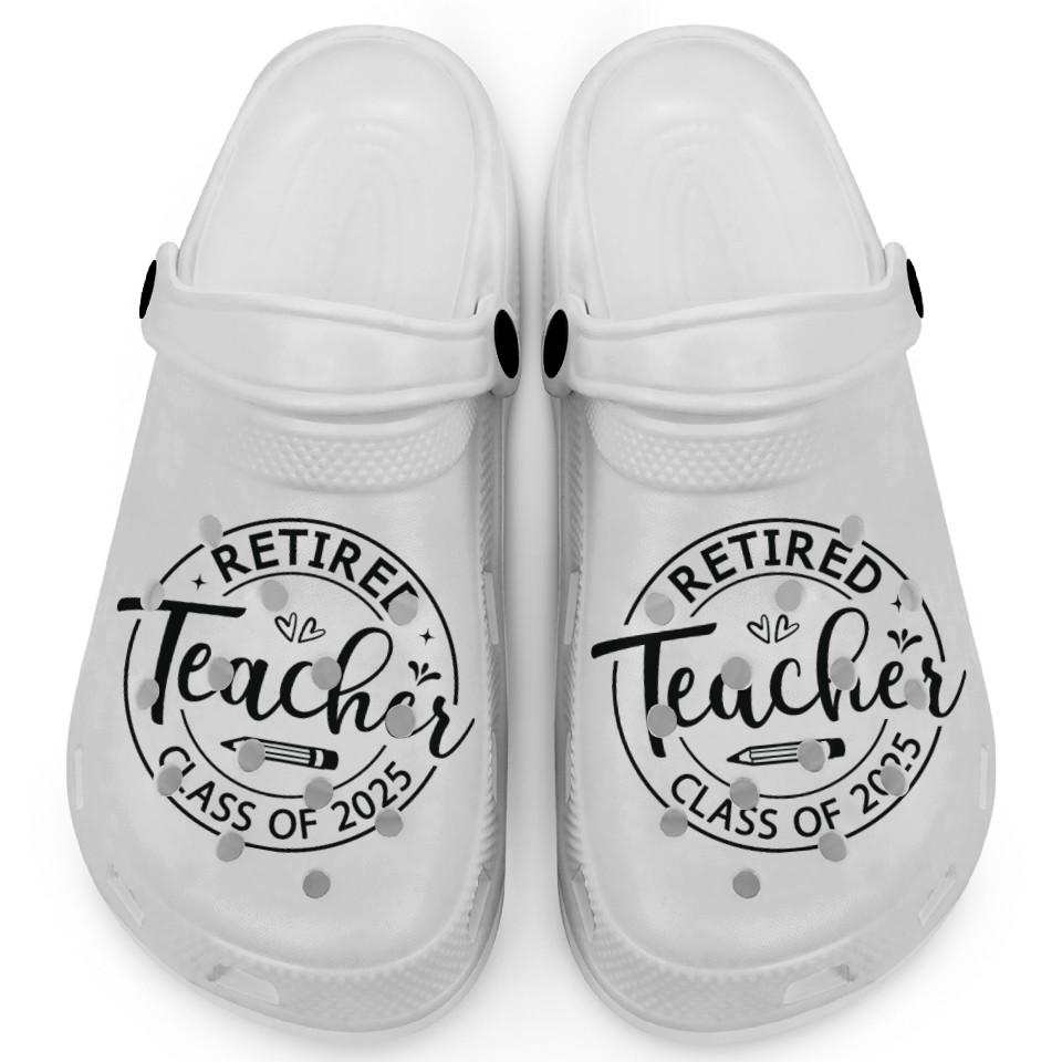Shop for attractive Teacher Retired Teacher Retirement 2025 Clogs or see more Clogs products on https://printblur.com right now!