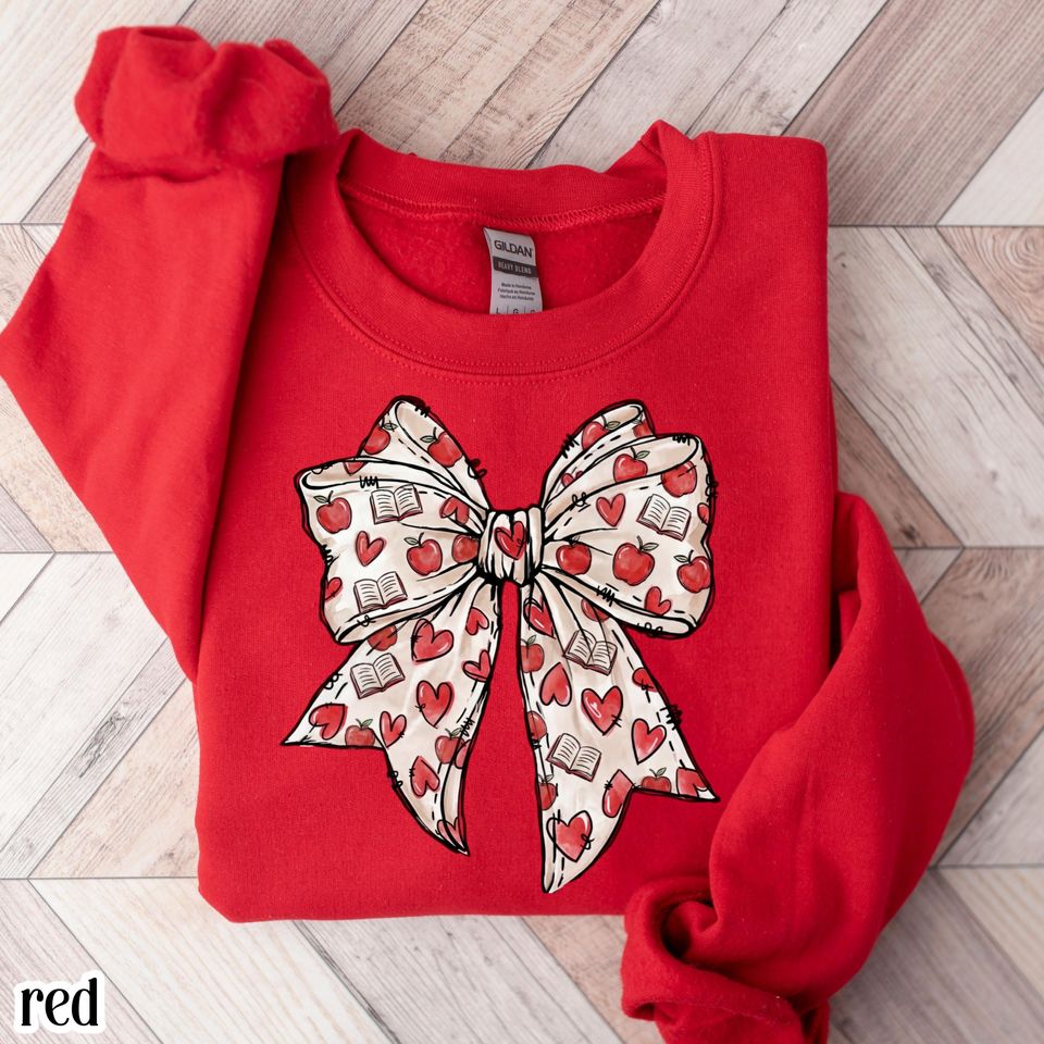 You are seeing a unique and impressive product Teacher Valentines Day Sweatshirt First Grade Teacher Sweater Cute Coquette Bow Pink Vday Kindergarten Teach Pullover For School Crewneck For Kids Black belong theme Sweatshirts at Printblur