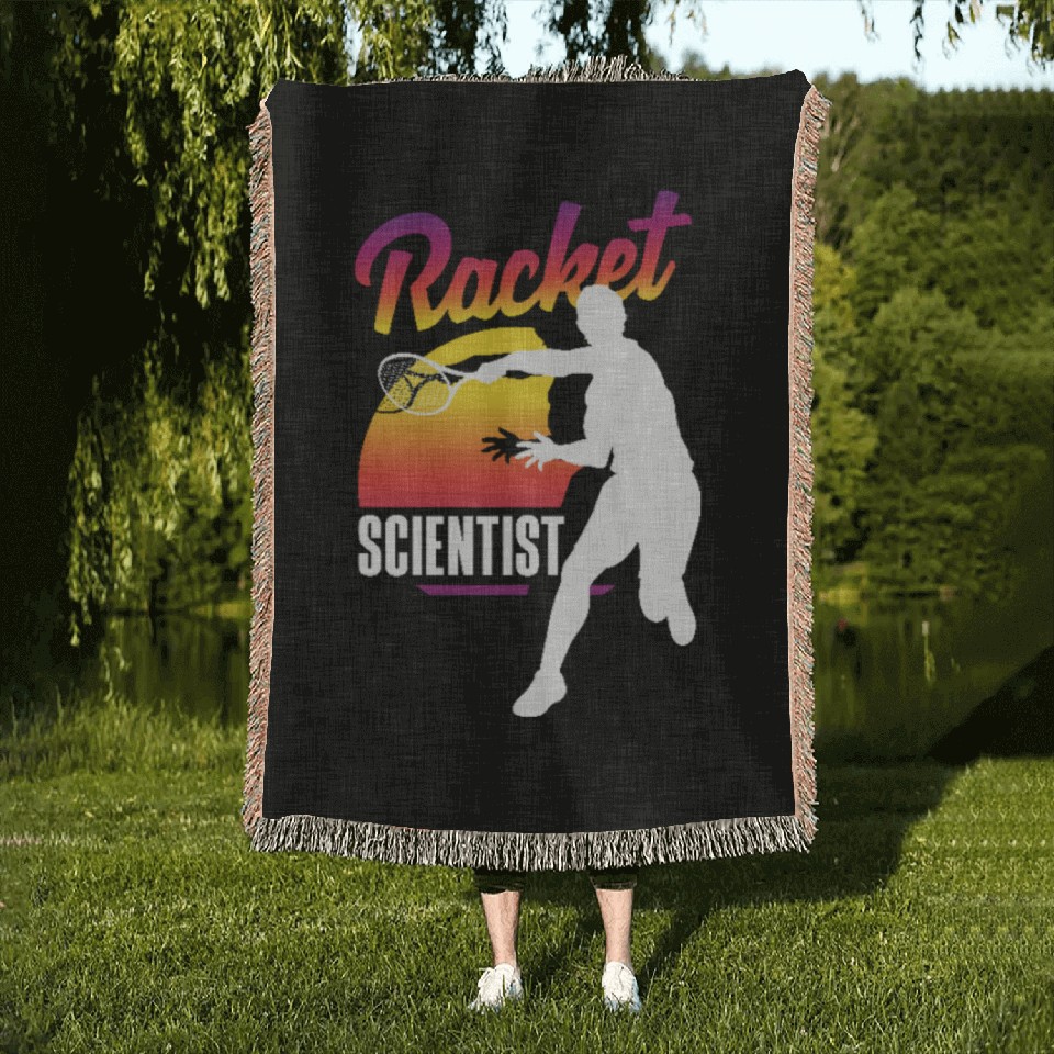 You are viewing one of the trendiest products Tennis Racket Scientist Sunset Silhouette Woven Blankets For Black belong theme Woven Blankets at Printblur
