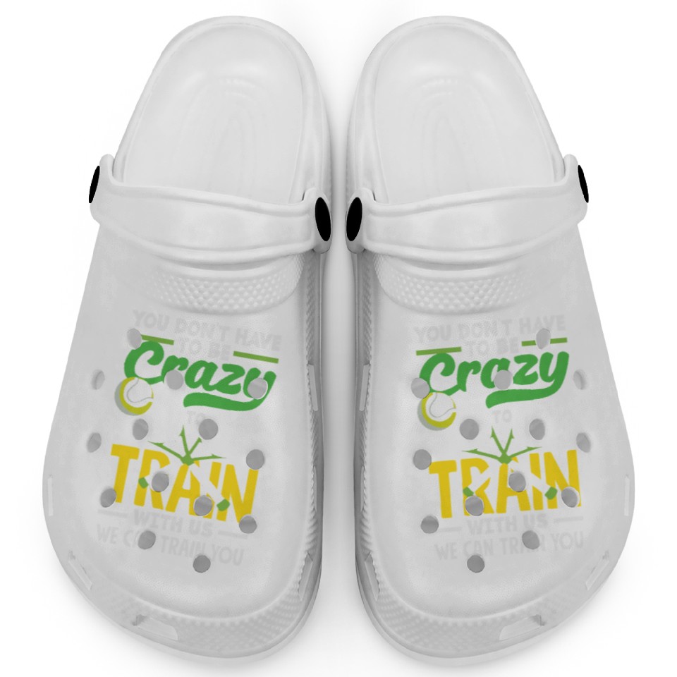 You are seeing a unique and impressive product Tennis Train With Us You Don't Have to Be Crazy Clogs For Kids WHITE belong theme Clogs at Printblur