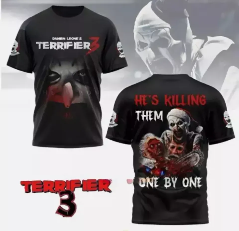 Own fascinating Terrifier 3 He s Killing Them One By One 3D T-Shirt or see more 3D T Shirts products now from Printblur shop to enjoy your shopping time!