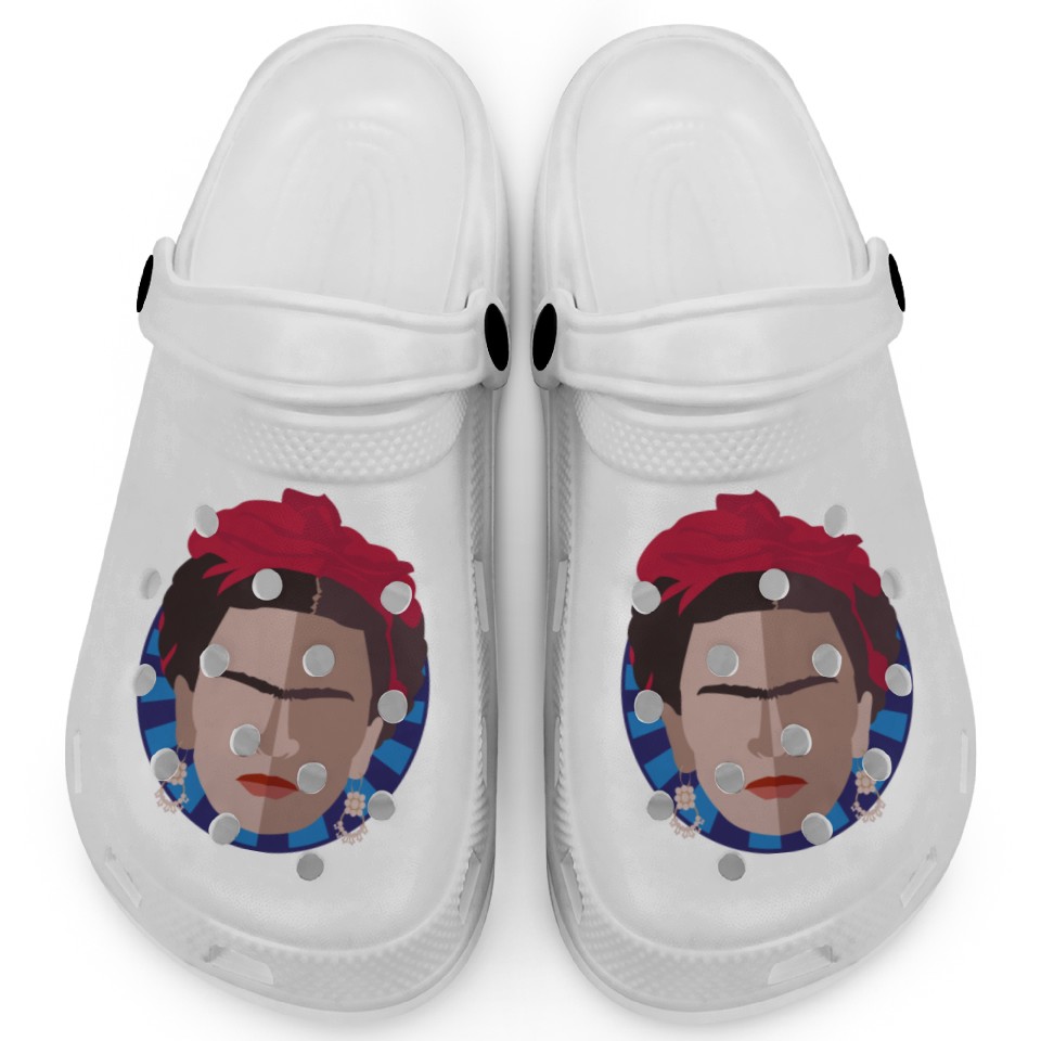 You're looking at the eye-catching product TGIF | Thank God it's Frida Kahlo Clogs For Kids WHITE belong theme Clogs at Printblur