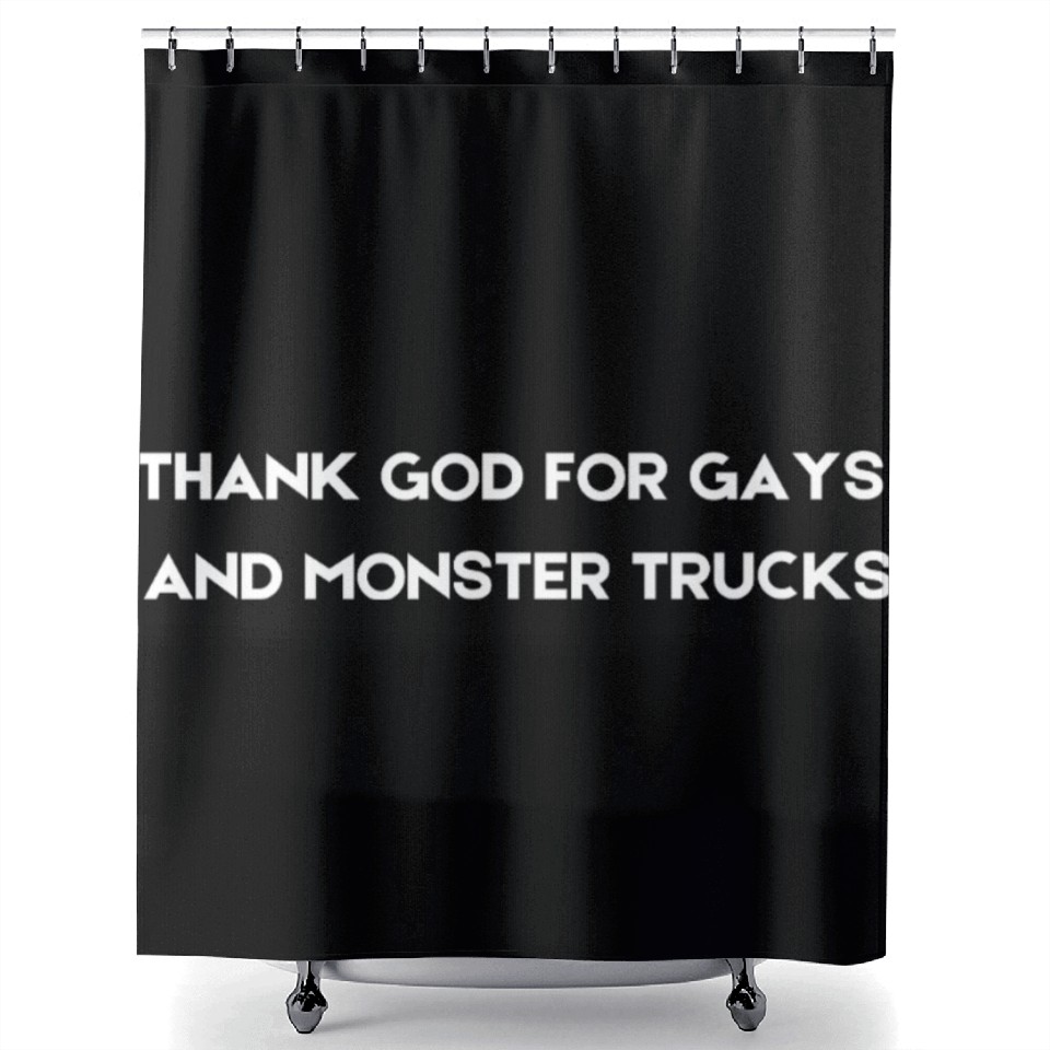 Buy stunning THANK GOD FOR GAYS AND MONSTER TRUCKS white Shower Curtains or see more Shower Curtains products at Printblur right now to receive many amazing discounts!