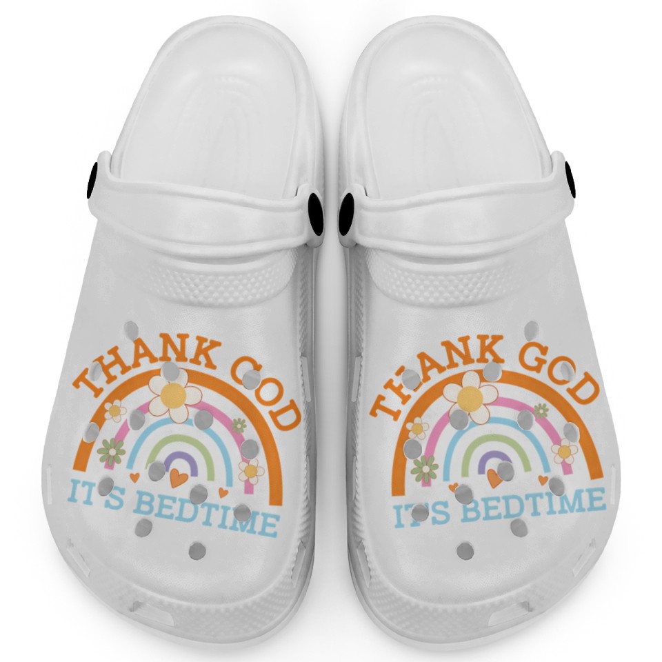 You are seeing a unique and impressive product Thank God Its Bedtime Mom Joke Mother Pun Mother'S Clogs For Kids WHITE belong theme Clogs at Printblur