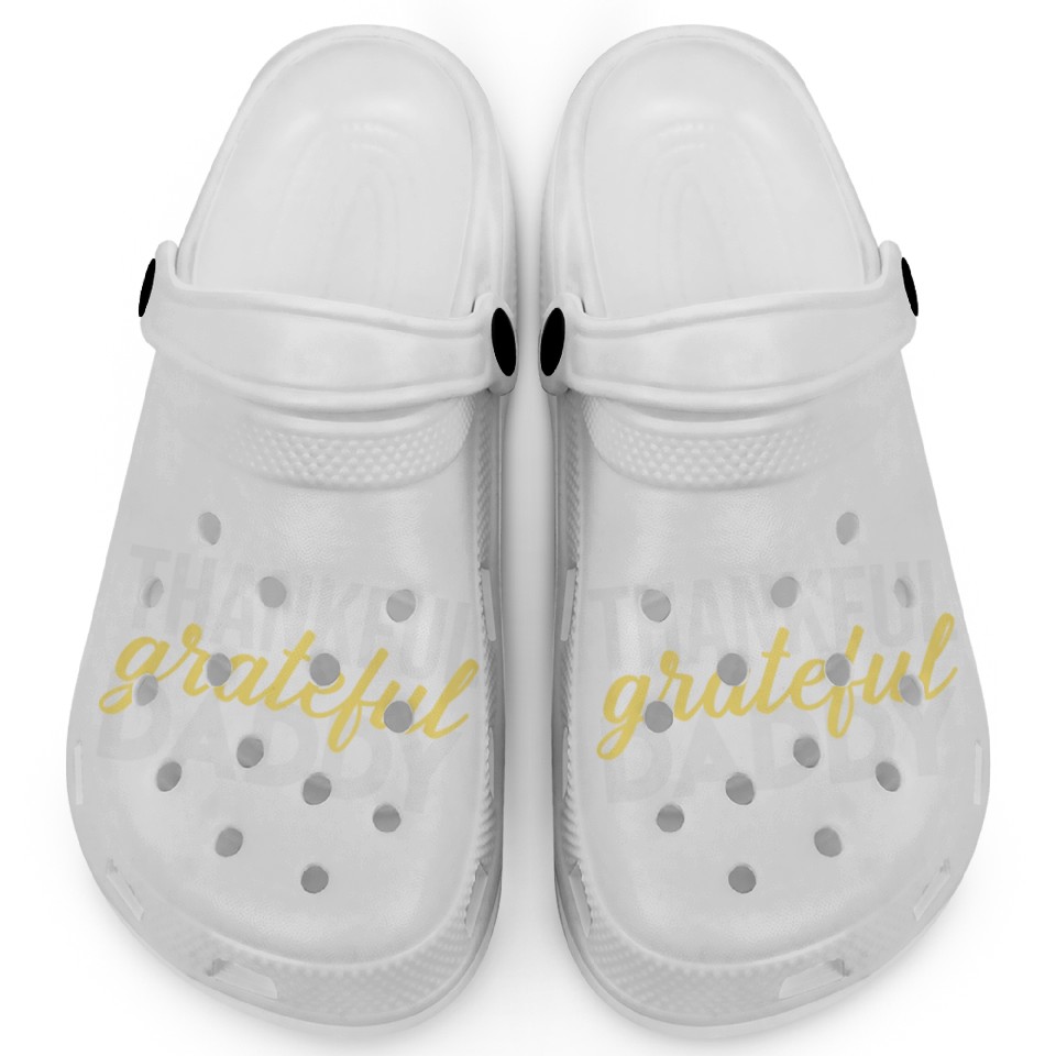You're taking a peek at the product Thankful Grateful Daddy Thanksgiving Clogs For Kids WHITE belong theme Clogs at Printblur