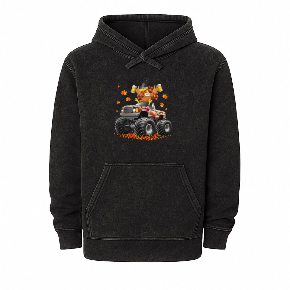 You are seeing a unique and impressive product Thanksgiving Beer Turkey Riding Monster Truck Mineral Wash Hoodies For Unisex Mineral Black belong theme Mineral Wash Hoodies at Printblur