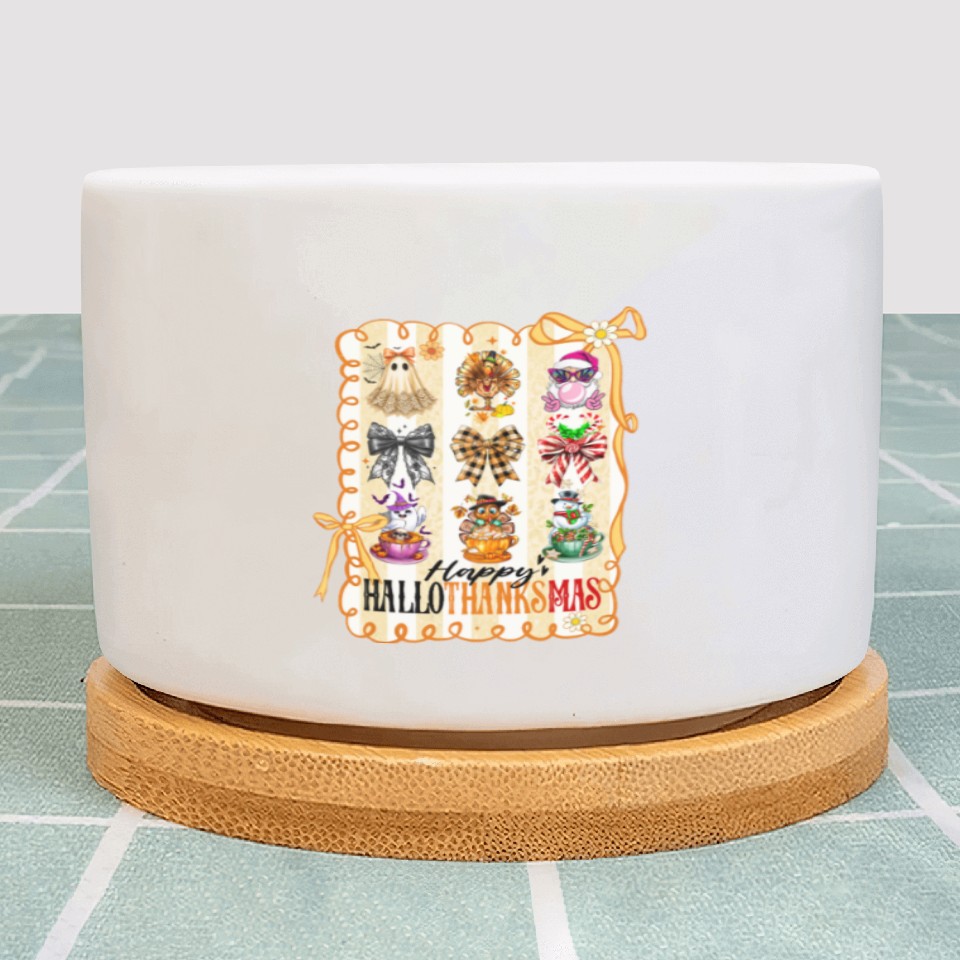 The item hot trend you're looking at is Thanksgiving Christmas Happy Hallothanksmas Plant Pots For WHITE belong theme Plant Pots at Printblur