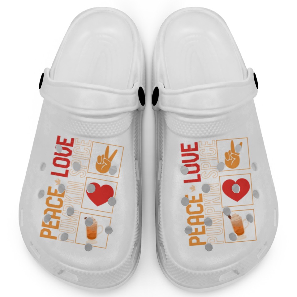Buy stunning Thanksgiving Clogs, Peace Love Pumpkin Spice Clogs, or see more Clogs products at Printblur right now to receive many amazing discounts!