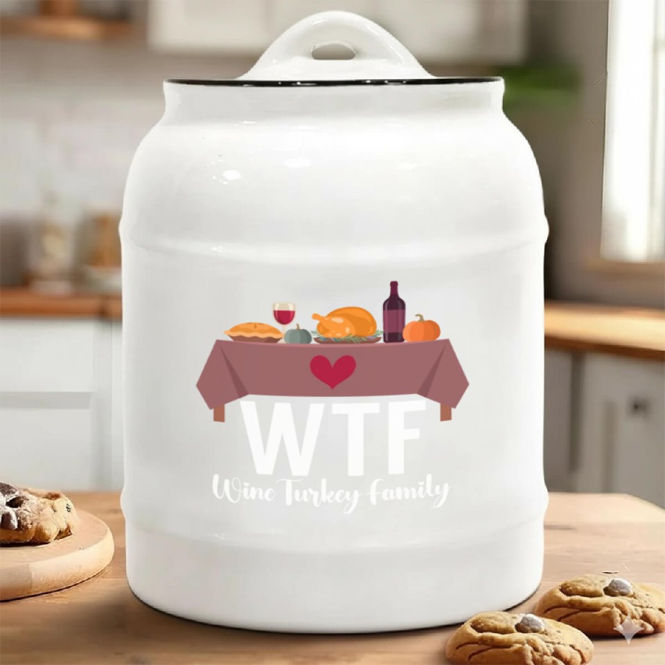 Buy eye-catching Thanksgiving WTF Wine Turkey Family Fall Harvest Ceramic Cookie Jars or see more Ceramic Cookie Jars products at Printblur shop now to explore many surprises from our shop!