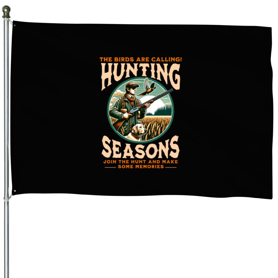 Buy eye-catching "THE BIRDS ARE CALLING HUNTING SEASONS" PHEASANT House Flags or see more House Flags products at Printblur shop now to explore many surprises from our shop!
