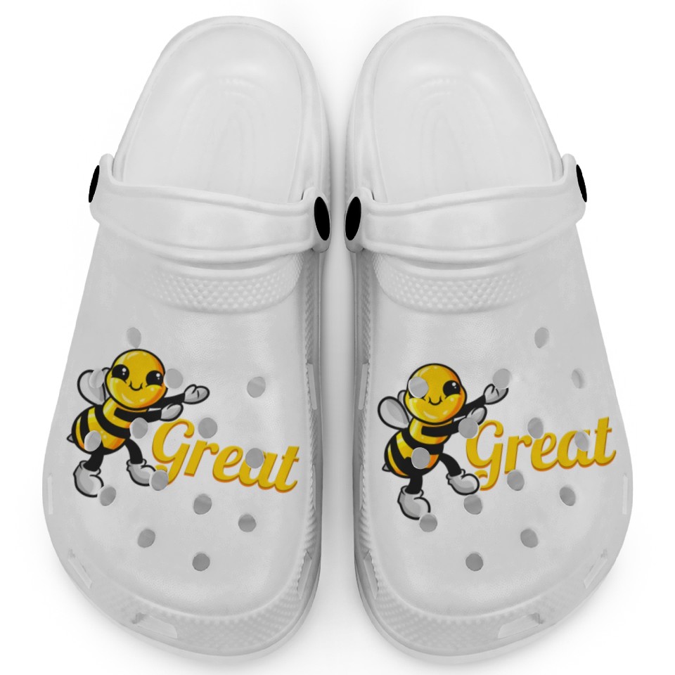 You are viewing one of the trendiest products The Cute Bee Says Be Great The Bee Clogs For Kids WHITE belong theme Clogs at Printblur