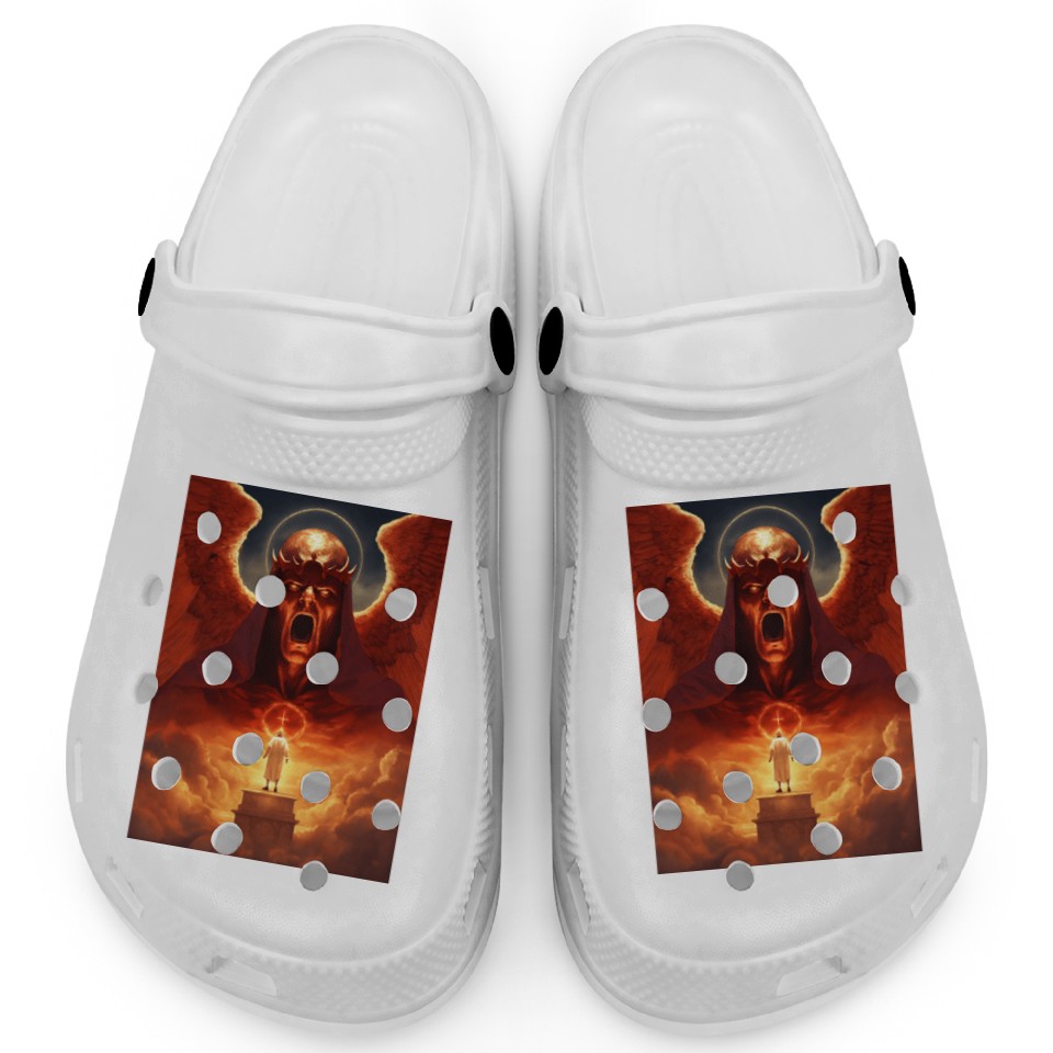 You are seeing a unique and impressive product The Devil & The Angel: Clogs For Kids WHITE belong theme Clogs at Printblur
