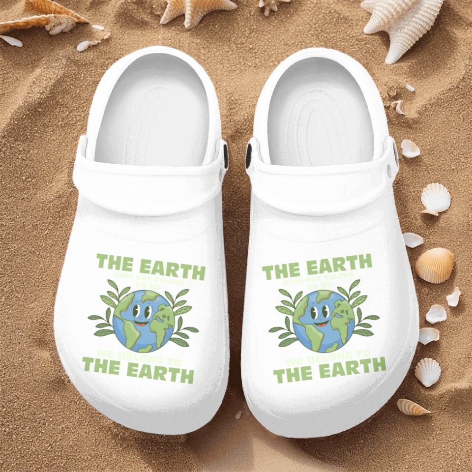 You are contemplating one of the best-selling products The Earth Does Not Belong To Us Earth Day Planet Nurse Clogs For Men WHITE belong theme Nurse Clogs at Printblur