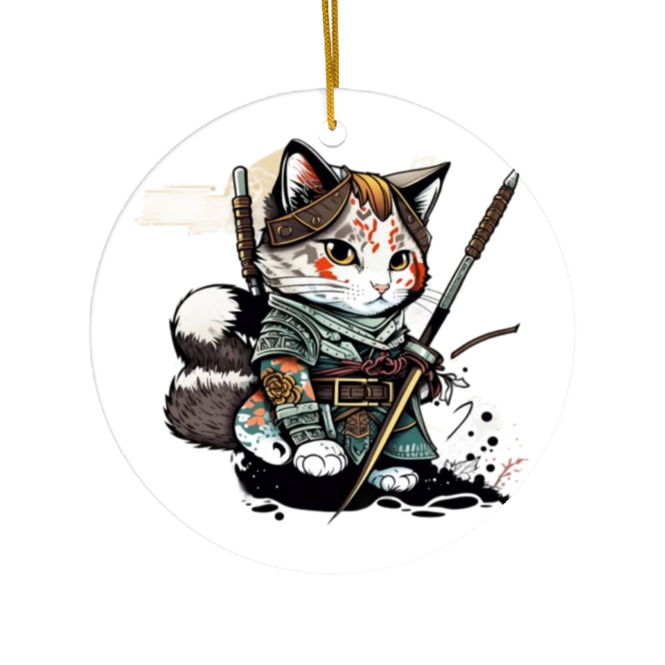 You are seeing a unique and impressive product The Fearless Samurai Cat: A Sword's Master Ceramic Ornaments For WHITE belong theme Ceramic Ornaments at Printblur