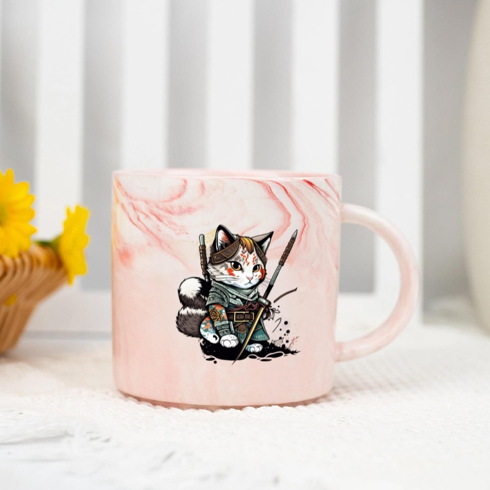 Buy eye-catching The Fearless Samurai Cat: A Sword's Master Marble Mugs or see more Marble Mugs products at Printblur shop now to explore many surprises from our shop!