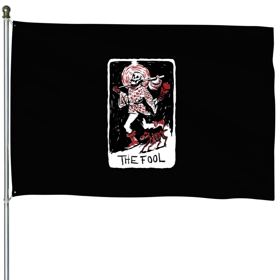 The item hot trend you're looking at is The Fool Skeleton With Dog Tarot Card House Flags For Black belong theme House Flags at Printblur