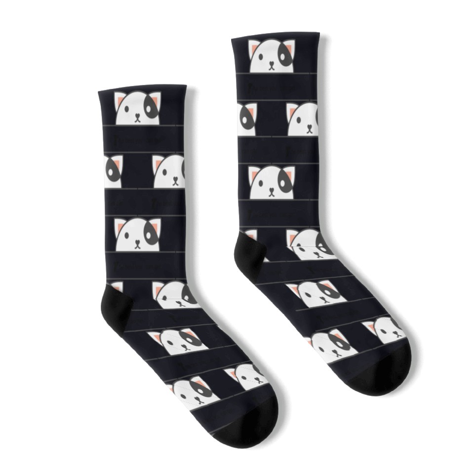 Elevate your sock game with our custom all-over-print (AOP) mid-calf socks. Crafted from a flexible 90% polyester, 10% spandex blend, these socks offer a comfortable, long-lasting fit.