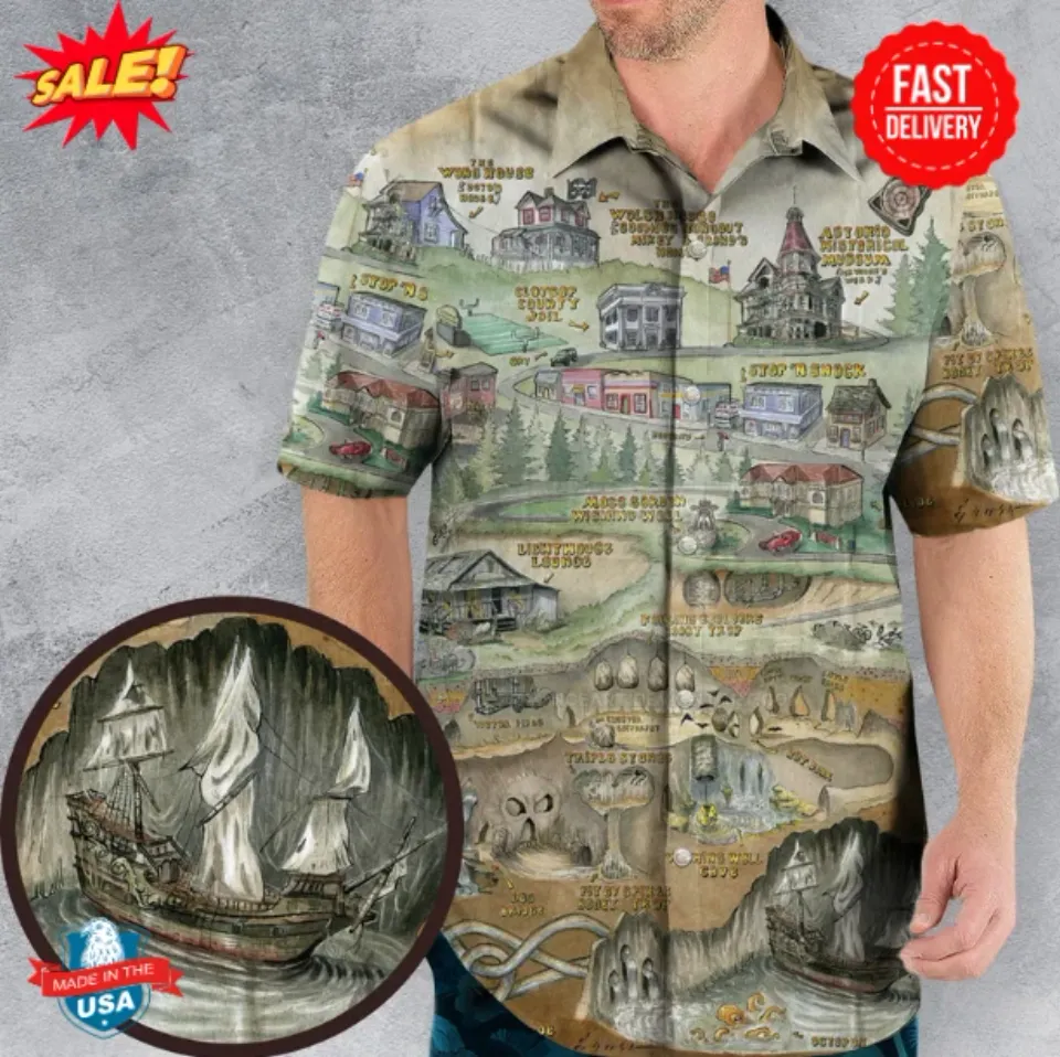 Shop for attractive The Goonies Adventure Map Hawaiian Shirt or see more Hawaiians products on https://printblur.com right now!