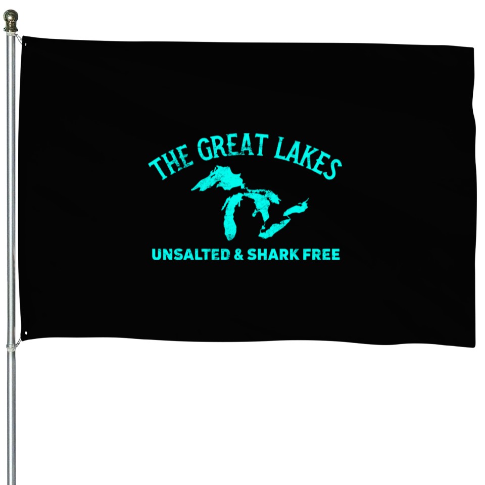 Buy eye-catching The Great Lakes Unsalted & Shark Free Michigan Vin House Flags or see more House Flags products at Printblur shop now to explore many surprises from our shop!