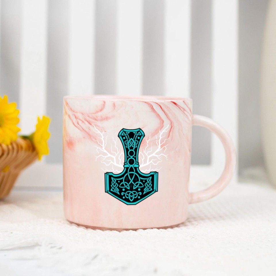 You're searching for a one-of-a-kind product The Hammer Of Thor With Lightning Mjolnir Marble Mugs For Pink belong theme Marble Mugs at Printblur