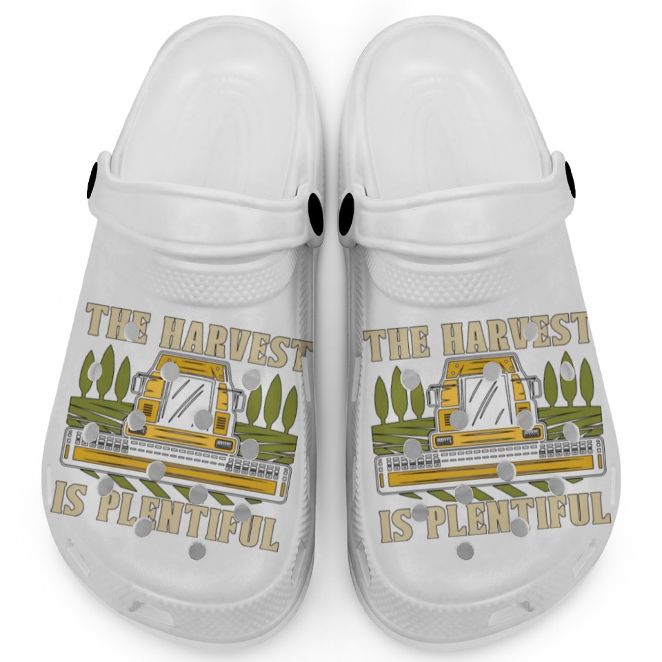 Own fascinating The Harvest Is Plentiful Farming Combine Harvester Clogs or see more Clogs products now from Printblur shop to enjoy your shopping time!