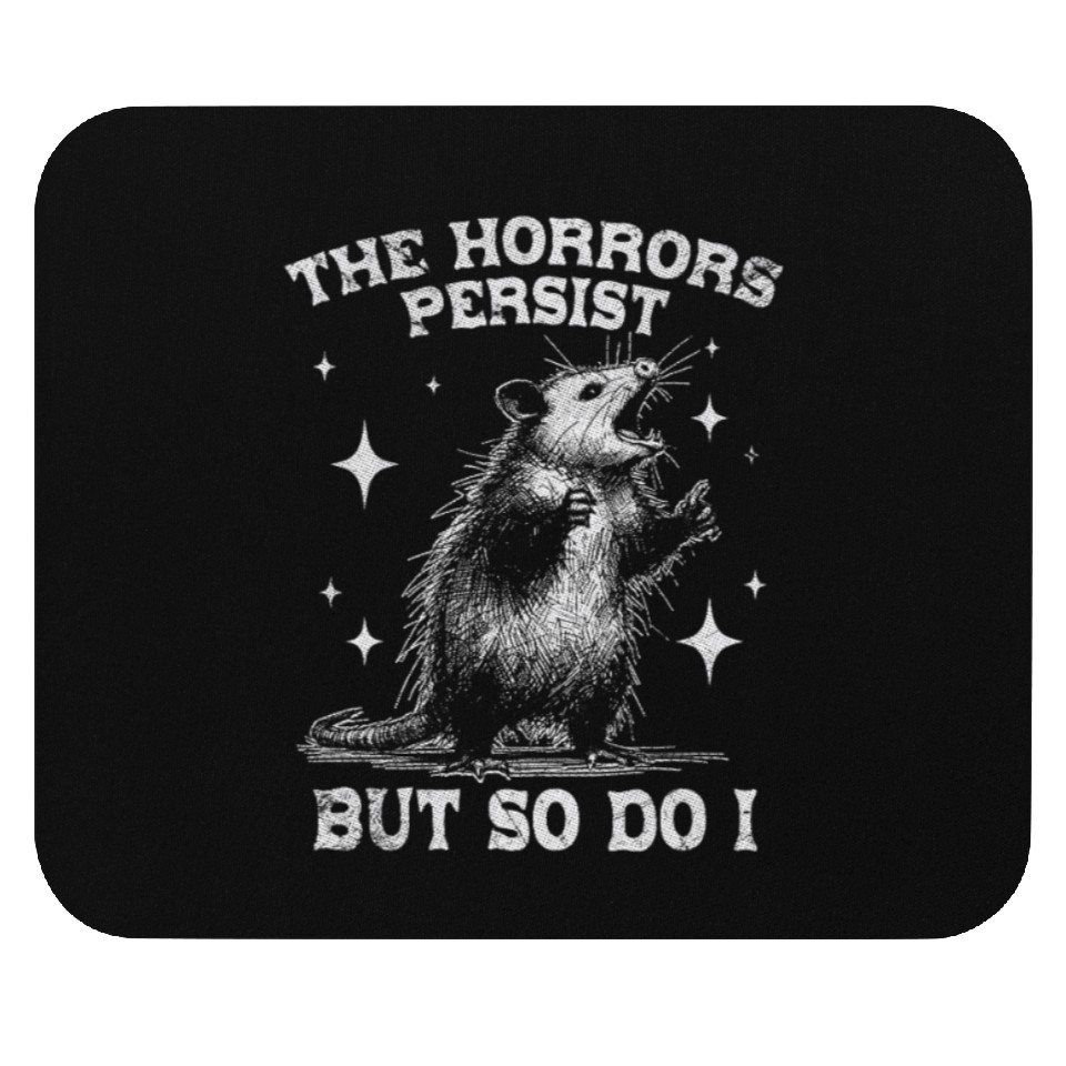 Buy stunning The Horrors Persist But So Do I Funny Opossum Meme Mouse Pads or see more Mouse Pads products at Printblur right now to receive many amazing discounts!