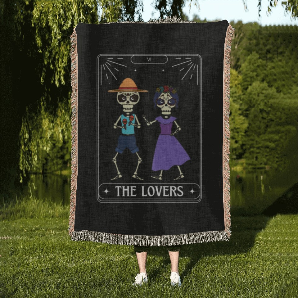 You are viewing one of the trendiest products The Lovers Tarot Card Got Skeleton Skull Halloween Woven Blankets For Black belong theme Woven Blankets at Printblur