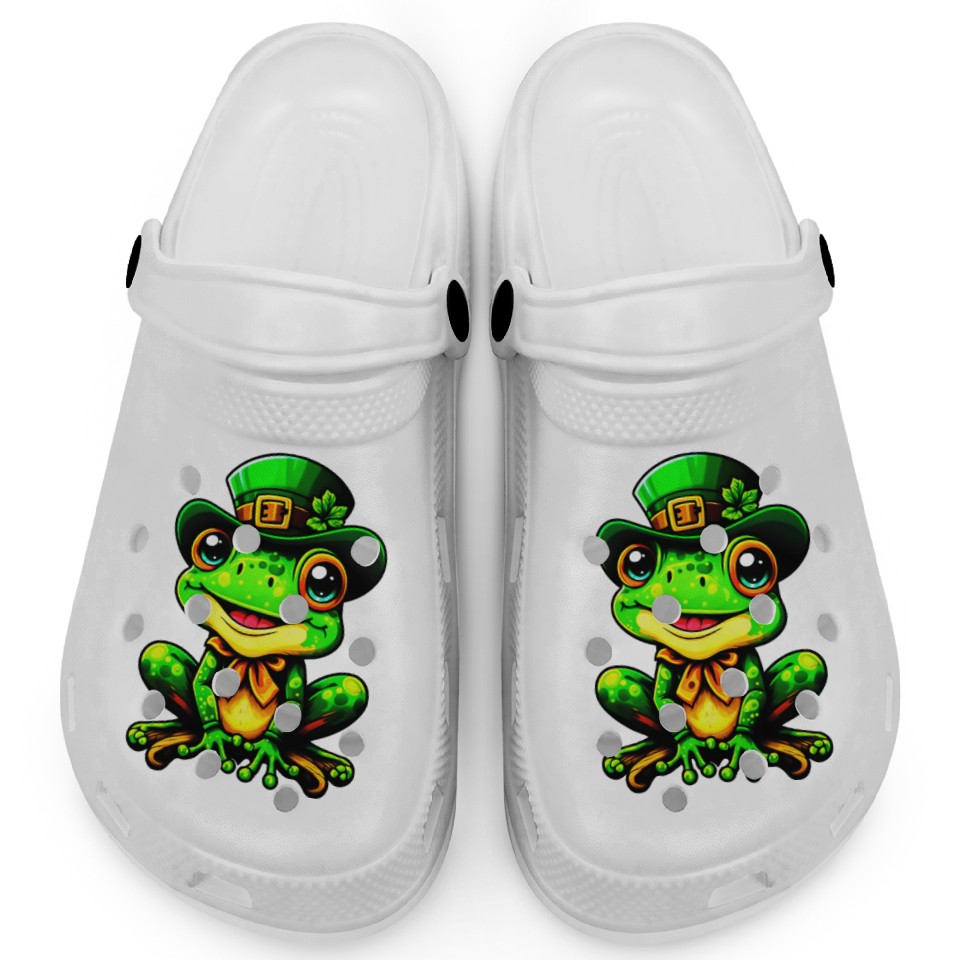 You are viewing an exclusive and elegant product The Magical St. Patrick's Day Frog Clogs For Kids WHITE belong theme Clogs at Printblur