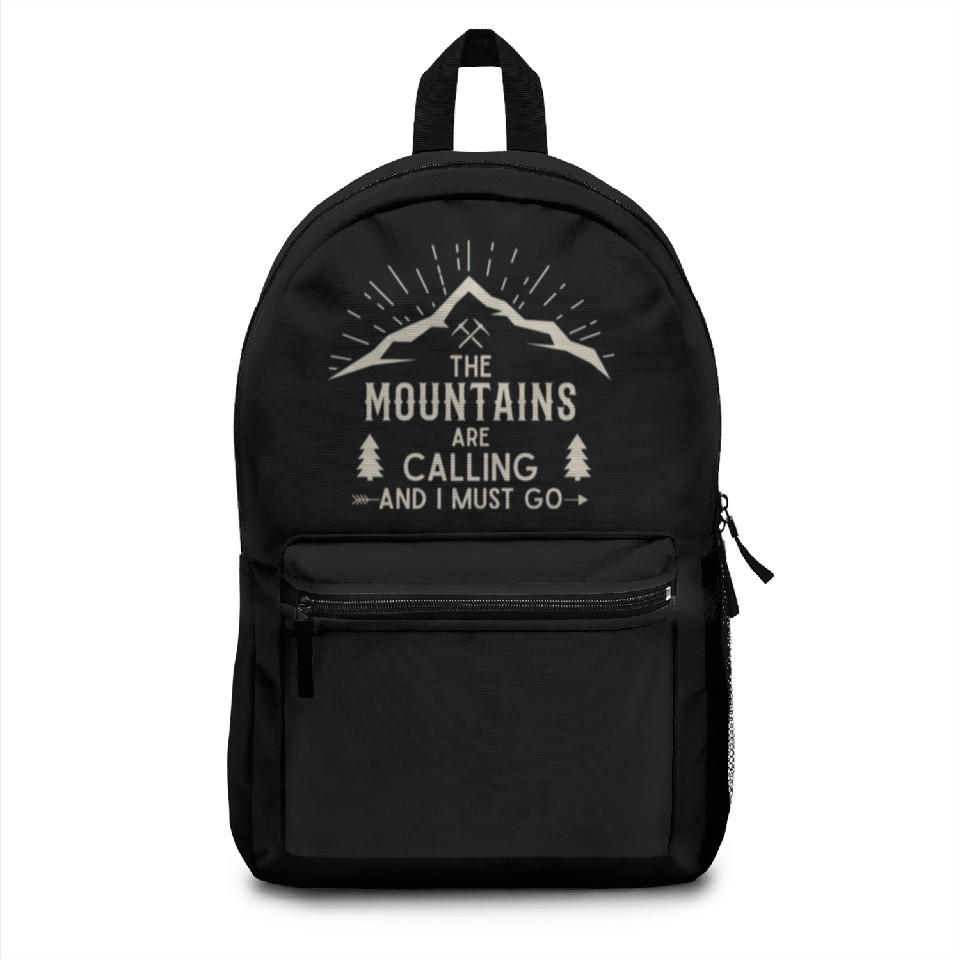 The item hot trend you're looking at is The Mountains are calling Hiking Climbing Nature Backpacks For Black belong theme Backpacks at Printblur
