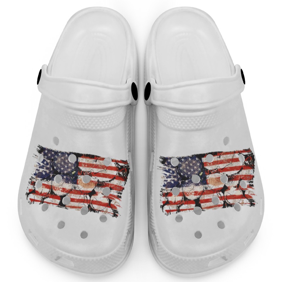 You're looking at the eye-catching product The Usa Flag Tree Trunks America Patriotism Clogs For Kids WHITE belong theme Clogs at Printblur