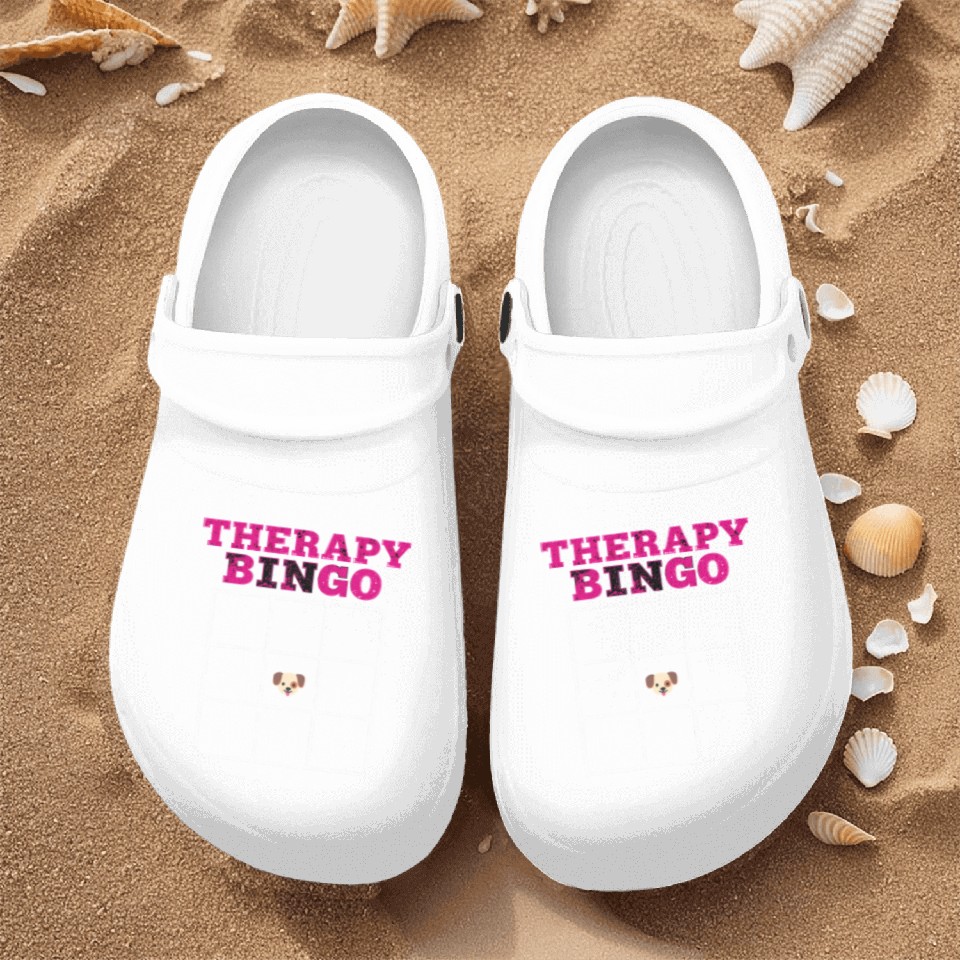 The item hot trend you're looking at is Therapy Bingo Card Nurse Clogs Dark Humor Mental Healt For Men WHITE belong theme Nurse Clogs at Printblur