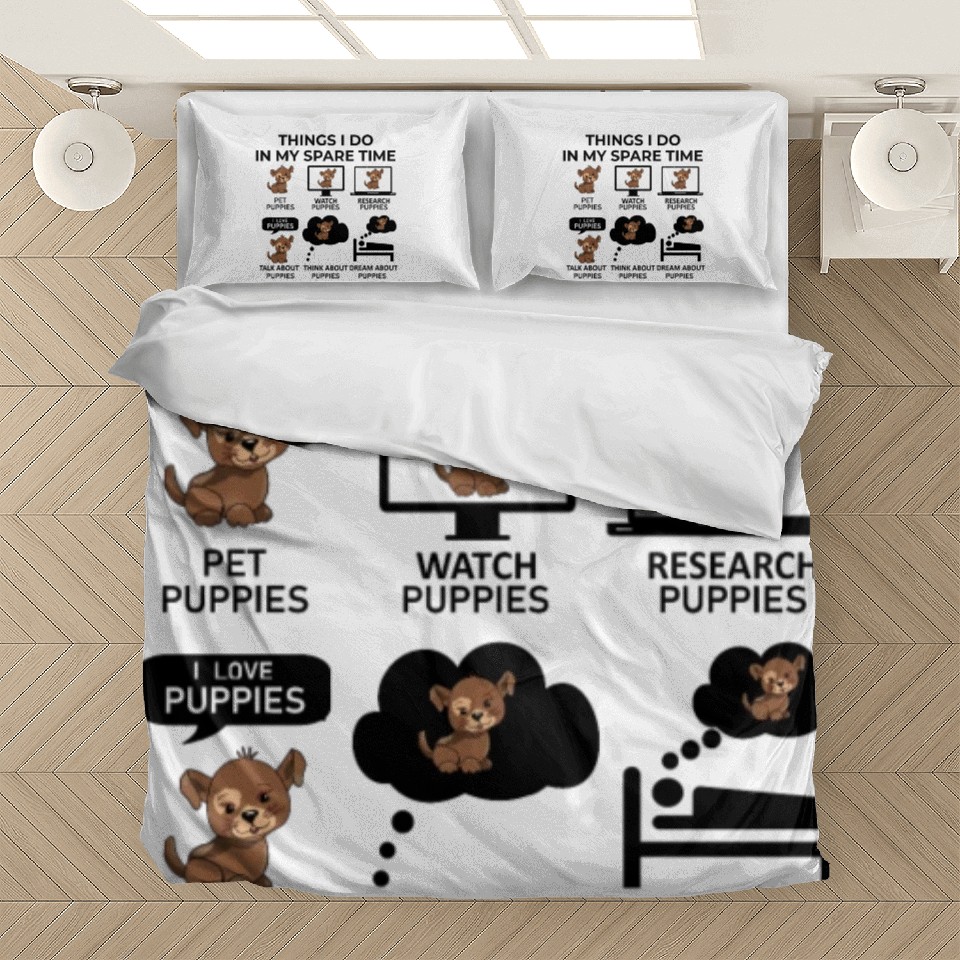 The product unique design you searched for is Things I Do In My Spare Time - Puppies Bedding Sets For WHITE belong theme Bedding Sets at Printblur