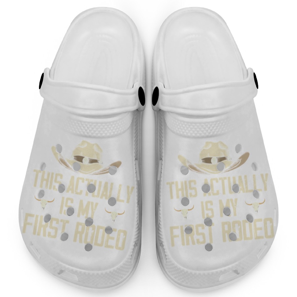 This Actually Is My First Rodeo - Funny Cowboy Clogs