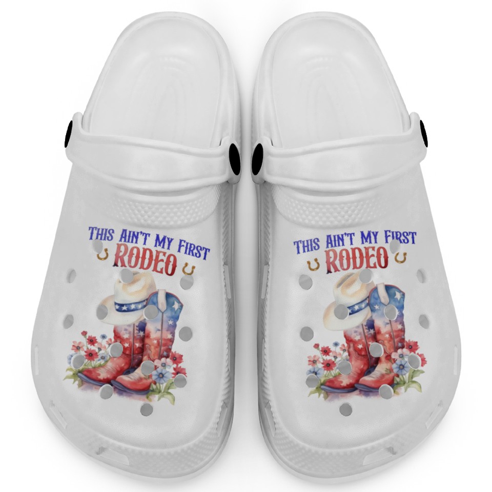 Buy eye-catching This Ain't My First Rodeo Women Rodeo Cowboy Clogs or see more Clogs products at Printblur shop now to explore many surprises from our shop!