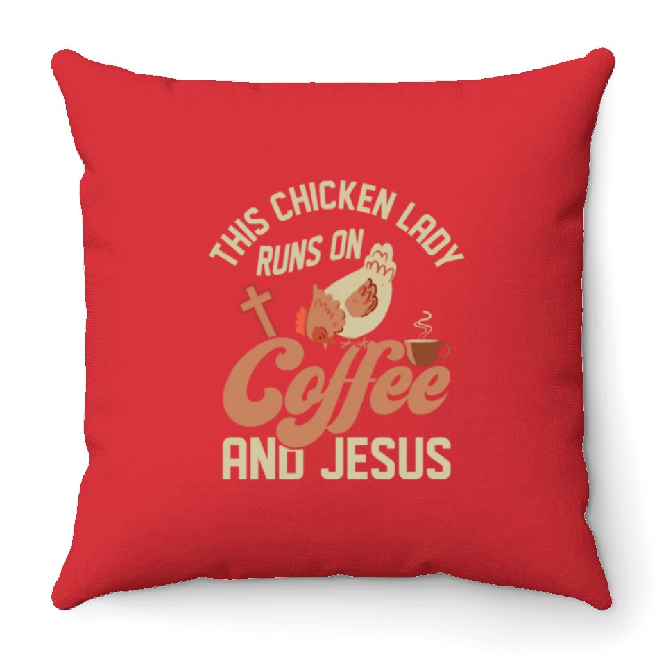 You are shopping for a stunning and trendy product This Chicken Lady Runs On Coffee And Jesus Hen Far Throw Pillows For Cover Only Red belong theme Throw Pillows at Printblur