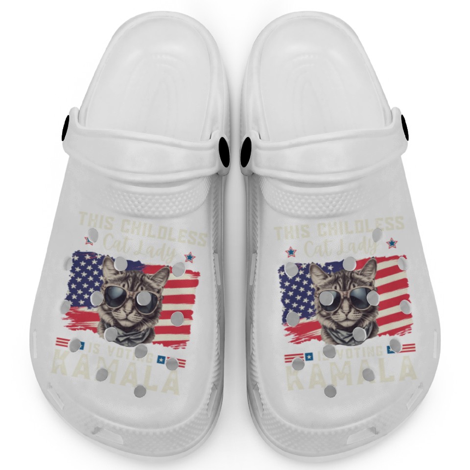 Shop for impressive This childless Cat lady for kamala Harris 2024 Clogs or see more Clogs products right now on Printblur to enjoy your happiness!