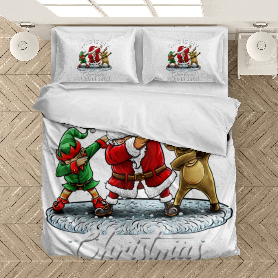 Buy eye-catching This Is My Christmas Pajama Dabbing Santa Elf Bedding Sets or see more Bedding Sets products at Printblur shop now to explore many surprises from our shop!