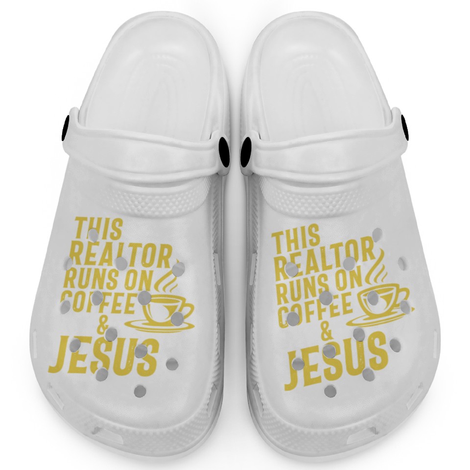 Shop for attractive This Realtor Runs On Coffee Jesus Real Estate Clogs or see more Clogs products on https://printblur.com right now!