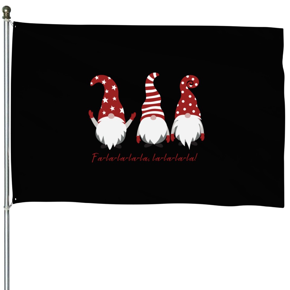 The product unique design you searched for is Three Christmas Dwarfs - Fa la la la la la la la House Flags For Black belong theme House Flags at Printblur
