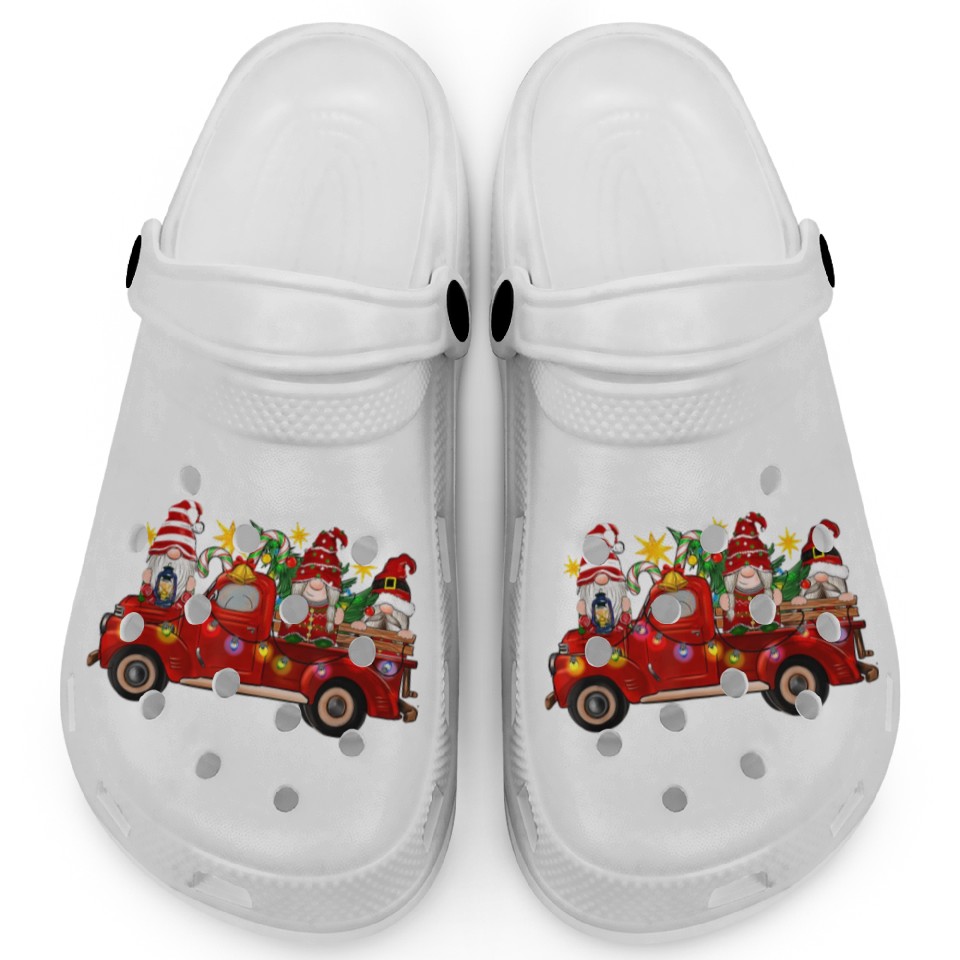 The item hot trend you're looking at is Three Gnomes In Red Truck Clogs For Kids WHITE belong theme Clogs at Printblur