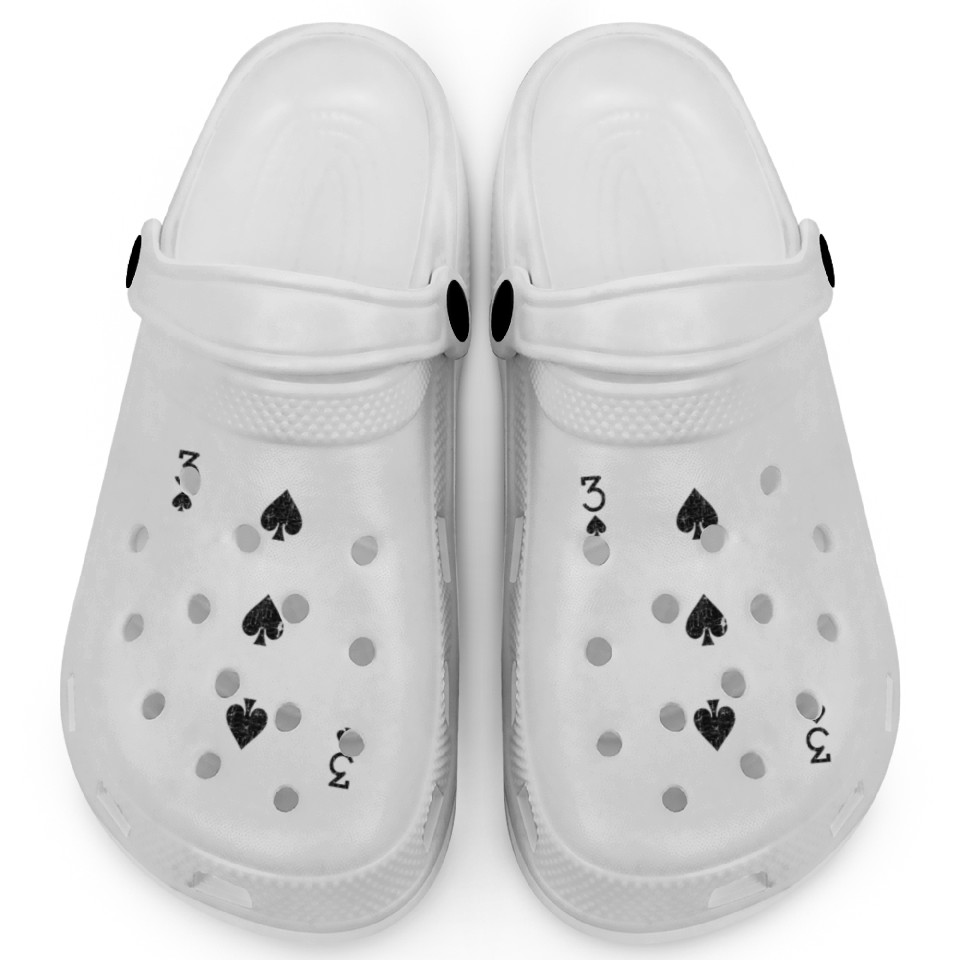 Buy eye-catching three of spades playing card Clogs or see more Clogs products at Printblur shop now to explore many surprises from our shop!