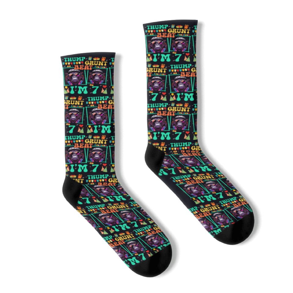 You are seeing a unique and impressive product Thump Grunt Beat I'm 7 Gorilla Lover Kid 7th Socks For Black belong theme Socks at Printblur