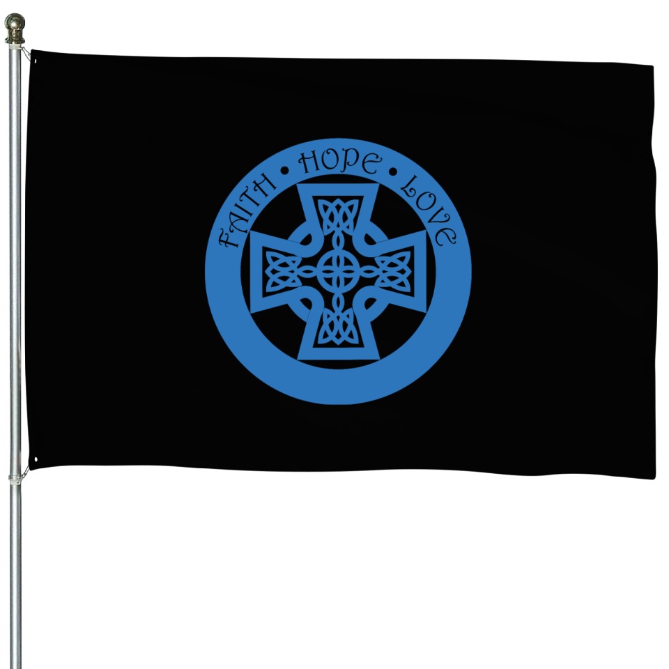 Shop for attractive Timeless Celtic Cross With Faith Hope Love House Flags or see more House Flags products on https://printblur.com right now!