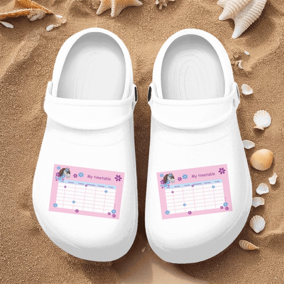 Shop for attractive Timetable for Kids - Pony Flowers pink Nurse Clogs or see more Nurse Clogs products on https://printblur.com right now!