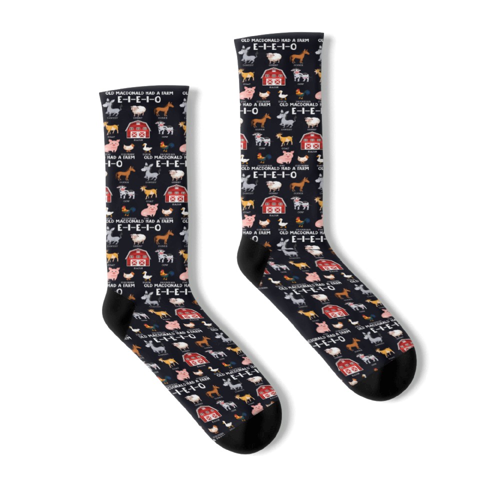 You are shopping for a stunning and trendy product Toddler Farm Animals Old Macdonald Had A Farm Socks For Black belong theme Socks at Printblur