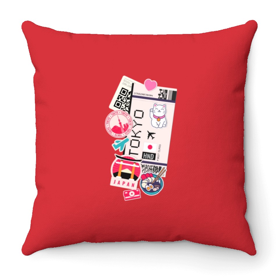 You're searching for a one-of-a-kind product Tokyo Air Ticket Boarding Pass Plane Japan Travel Throw Pillows For Cover Only Red belong theme Throw Pillows at Printblur
