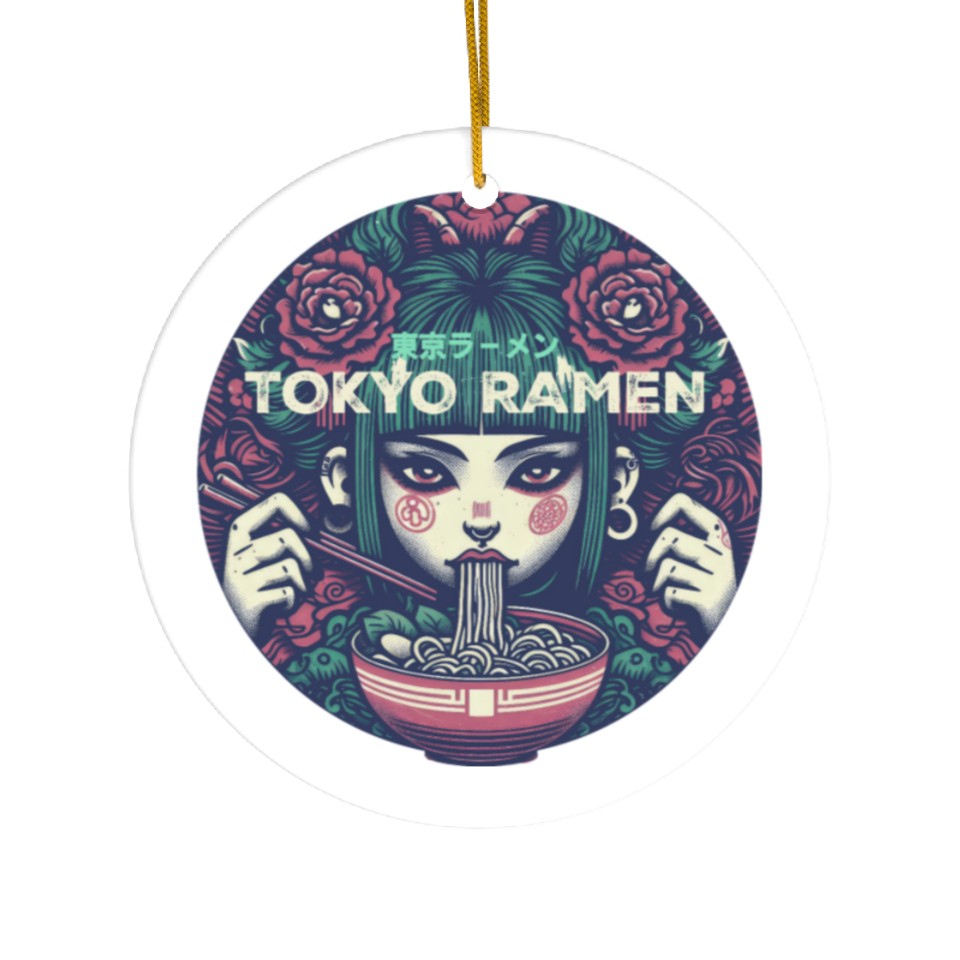 You're looking at the eye-catching product Tokyo ramen,punk girl having ramen Ceramic Ornaments For WHITE belong theme Ceramic Ornaments at Printblur