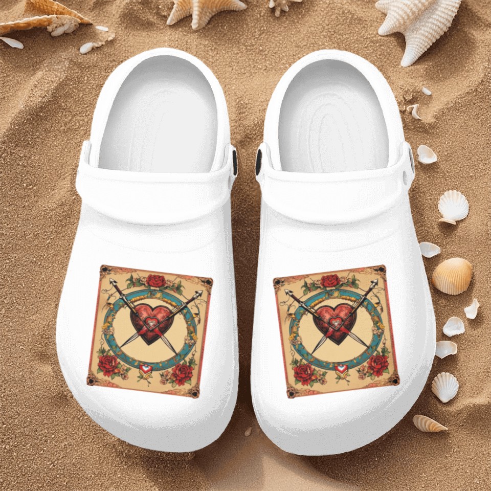 You are seeing a unique and impressive product Traditional Tattoo Heart with Cupid Bow Nurse Clogs For Men WHITE belong theme Nurse Clogs at Printblur